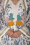 Featuring a blue cape in viscose georgette base with print and hand embroidered floral motifs. It is paired with a matching ivory tunic and pants.