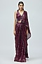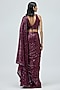 Dark Purple Shimmer Sequins Embroidered Draped Saree Set