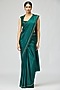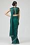 Varun Bahl features a green saree in armani satin base adorned with cutdana and beadwork. It is paired with a blouse and an underskirt. Style it with zircon jewellery and embellished heels for a mehendi, reception, wedding, sangeet or engagement ceremony.