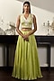 Featuring a green blouse in satin organza base with ivory hand and machine embroidery. It is paired with a matching skirt.
