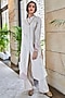 Featuring an ivory kurta in chanderi base with hand embroidered sleeves. It is paired with matching pants.