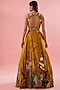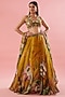 Mustard Viscose Organza Floral Digital Printed & Machine Embroidered Lehenga Set