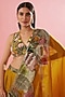Featuring a mustard lehenga in viscose organza base with floral digital print and machine embroidery. It is paired with a mono net printed and embroidered bralette and a dupatta. Style it with dangler earrings and heels for a wedding or engagement ceremony.