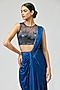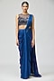 Varun Bahl features a navy saree in net and armani satin base adorned with bead and sequin embellishments. It is paired with a blouse and an underskirt. Style it with zircon jewellery and embellished heels for a festive occasion, reception, wedding, sangeet or engagement ceremony.