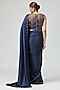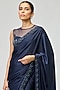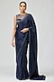 Navy Blue Armani Satin Cutdana Embellished Saree Set