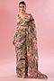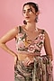 Featuring a pink stitched saree in organza base with digital print, silver sequins, pink drops and bugle bead embellishments. It is paired with a mono net embroidered blouse. Accentuate it with gold jewellery and heels for a complete bridal look.