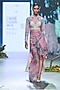 Varun Bahl features a pink bolero jacket in velvet and organza base with floral print. It is paired with an asymmetrical printed skirt and an ivory bralette having resham, sequins and cutdana embroidery. Accentuate it with statement earrings and heels for an evening look.