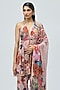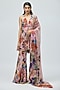 Varun Bahl features a pink kurta in viscose georgette base adorned with halter neck and print. It is paired with sharara and a dupatta. Style it with dangler earrings, structured clutch and embellished heels for a festive occasion, sangeet, engagement or wedding ceremony.