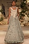 Featuring a seafoam blue gown in silk organza and net base with aari, bugle beads and sequins embroidery. Elevate your look for a wedding or an engagement ceremony by accessorizing this designer gown with heels and dangler earrings. It's the perfect way to add a touch of glamour and elegance to your ensemble.