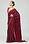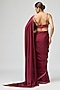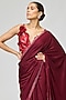 Varun Bahl features a wine saree in glossy organza base adorned with threadwork and 3D leaf embellishments. It is paired with a blouse and an underskirt. Style it with zircon jewellery and embellished heels for a reception, wedding, sangeet or engagement ceremony.
