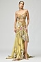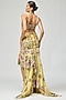 Varun Bahl features a yellow asymmetric skirt in silk organza base adorned with floral embroidery. It is paired with a strappy blouse. Style it with dangler earrings and embellished heels for a festivities or cocktail events.