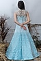 Featuring an ice blue gown in organza and net base with cutdana embroidery.