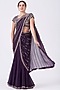 Featuring an aubergine saree in chiffon base with sequins embroidery. It is paired with a matching blouse.