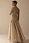 Featuring a beige gold jacket in silk organza base with metallic cutwork hand embroidery. It is paired with a matching organza woven layered skirt having cutwork.