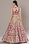 Featuring a molten gold and fuchsia lehenga in silk organza base with metallic gota tape and mirror sequins embroidery. It is paired with a matching blouse and an embroidered dupatta.