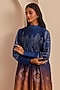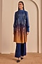 Featuring a blue and ochre kurta in vasansi silk base with bandhani print. It is paired with pants. Accentuate it with gold jewellery, embellished juttis, a braid and a potli bag for a festive look or family gatherings.