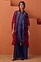 Featuring a blue and pink kaftan in vasansi silk base with print, bead and shell work. It is paired with pants. Accentuate it with silver jewellery, embellished juttis, a braid and a potli bag for a festive look or family gatherings.