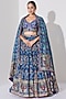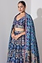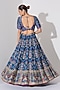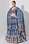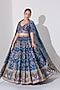 Featuring a blue lehenga in vasansi silk base with print, beads, cutdana and sequins embroidery. It is paired with an unstitched blouse and a dupatta. Accentuate it with emerald jewellery, embellished heels, a sleek bun and a potli bag for a sangeet look or weddings.