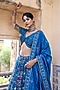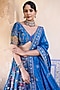 Featuring a blue lehenga in vasansi silk base with print, beads, cutdana and gota patti work. It is paired with an unstitched blouse and a dupatta. Accentuate it with emerald jewellery, embellished heels, a sleek bun and a potli bag for a sangeet look or weddings.