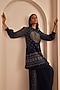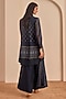 Featuring a charcoal blue top in vasansi silk base with print. It is paired with cowl pants. Accentuate it with silver jewellery, embellished juttis, a braid and a potli bag for a festive look or family gatherings.