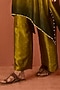 Featuring a green and yellow asymmetric kurta in vasansi silk base with bandhani print and bead work. It is paired with pants. Accentuate it with silver jewellery, embellished juttis, a braid and a potli bag for a festive look or family gatherings.