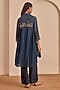Featuring a metallic blue kurta in vasansi silk base with print and bead work. It is paired with pants. Accentuate it with pearl jewellery, embellished juttis, a braid and a potli bag for a festive look or family gatherings.