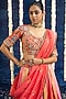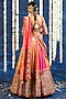 Featuring a multi-colored lehenga in vasansi silk base with print, aari, cutdana and gota work. It is paired with an unstitched blouse and a dupatta. Accentuate it with emerald jewellery, embellished heels, a sleek bun and a potli bag for a sangeet look or weddings.