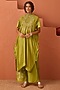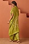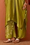 Featuring an olive green asymmetrical kaftan in vasansi silk base with bandhani print. It is paired with pants. Accentuate it with silver jewellery, embellished juttis, a braid and a potli bag for a festive look or family gatherings.