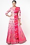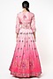 Featuring a pink lehenga in silk base with sequins, cutdana embroidery, and floral print. It is paired with an unstitched blouse fabric, a leheriya silk dupatta, and a belt. Accentuate this designer set with statement jewellery and heels for sangeet ceremonies or weddings.