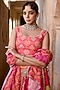 Featuring a pink and red lehenga in vasansi silk base with print, cutdana, aari and sequins embroidery. It is paired with an unstitched blouse and a dupatta. Accentuate it with emerald jewellery, embellished heels, a sleek bun and a potli bag for a sangeet look or weddings.