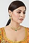 House of Vastraa presents a gold finish choker necklace studded with pachi kundan polki and pearls, set in mixed metal. It is paired with a matching pair of earrings.