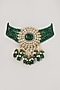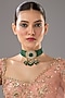 Featuring a gold finish choker necklace studded with emerald synthetic stones, set in mixed metal. Accessorise it with elegant ethnic or fusion ensembles for a statement look, ideal for festive soirees or wedding celebrations.