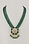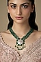 House of Vastraa presents a gold finish necklace studded with green emerald synthetic stones, set in mixed metal. It is a true testament to the artistry of India's rich cultural heritage, ideal for festive occasions and wedding celebrations.