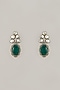 Featuring a pair of gold finish stud earrings studded with green synthetic stones, set in mixed metal. Accessorise it with elegant ethnic or fusion ensembles for a statement look, ideal for festive soirees or wedding celebrations.