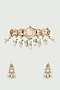 House of Vastraa presents a gold finish choker necklace studded with kundan polki, pink stone and green beads. It is paired with a matching pair of earrings.