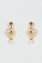 House of Vastraa presents a pair of gold finish dangler earrings studded with kundan polki, red and green synthetic stones, set in mixed metal.