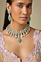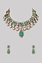 Gold Finish Kundan Polki & Emerald Stone Necklace Set