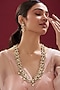 House of Vastraa presents a gold finish long necklace studded with kundan polki and green beads, set in mixed metal. It is paired with a matching pair of earrings. It is a true masterpiece that celebrates the beauty and grace of Indian culture, making it a cherished addition to your jewellery collection.
