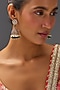 House of Vastraa presents a pair of gold finish jhumka earrings studded with kundan polki, green stones and green beads, set in mixed metal. It is a true testament to the artistry of India's rich cultural heritage, ideal for festive occasions and wedding celebrations.