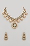 Gold Finish Kundan Polki & Green Stone Necklace Set