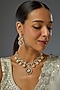 House of Vastraa presents a gold finish necklace studded with kundan polki and green stones, set in mixed metal. It is paired with a matching pair of earrings. This necklace set is a true testament to the artistry of India's rich cultural heritage, ideal for festive occasions or wedding celebrations.