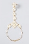 House of Vastraa presents a gold finish haath phool studded with pearls and kundan polki, set in mixed metal.