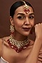 House of Vastraa presents a gold finish choker necklace studded with kundan polki and multi-colored beads, set in mixed metal. It is paired with a matching pair of earrings and a maangtikka.