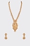 Gold Finish Kundan Polki & Multi-Colored Stone Long Temple Necklace Set