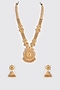 Gold Finish Kundan Polki & Multi-Colored Stone Long Temple Necklace Set