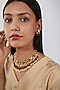 House of Vastraa presents a gold finish necklace studded with kundan polki, pearls, and multi-colored stones, set in mixed metal. It is paired with a matching pair of earrings.