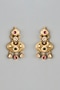 House of Vastraa presents a pair of gold finish temple dangler earrings studded with kundan polki and multi-colored stones, set in mixed metal. These earrings are a true testament to the artistry of India's rich cultural heritage, ideal for festive occasions or wedding celebrations.