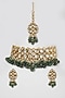 House of Vastraa presents a gold finish necklace studded with kundan polki and beads, set in mixed metal. It is paired with a matching pair of earrings and a maang tikka.