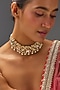 House of Vastraa presents a gold finish necklace studded with kundan polki, set in mixed metal. It is a true testament to the artistry of India's rich cultural heritage, ideal for festive occasions and wedding celebrations.