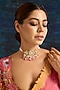 House of Vastraa presents a gold finish choker necklace studded with kundan polki and pink beads, set in mixed metal. It is a true testament to the artistry of India's rich cultural heritage, capturing the essence of regal opulence in every shimmering facet.